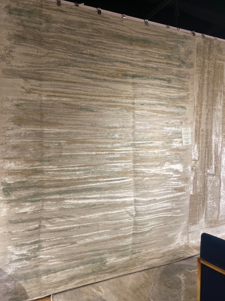 Among the top looks are solid colored high-low designs, with ivory and beige being top colorways that generated enthusiasm with designers and retailers walking the show. In addition, several area rug showrooms featured easy to decorate with solids in directional colorways including rich browns, deep greens, midnight blues, and of course beige, sand and gray.