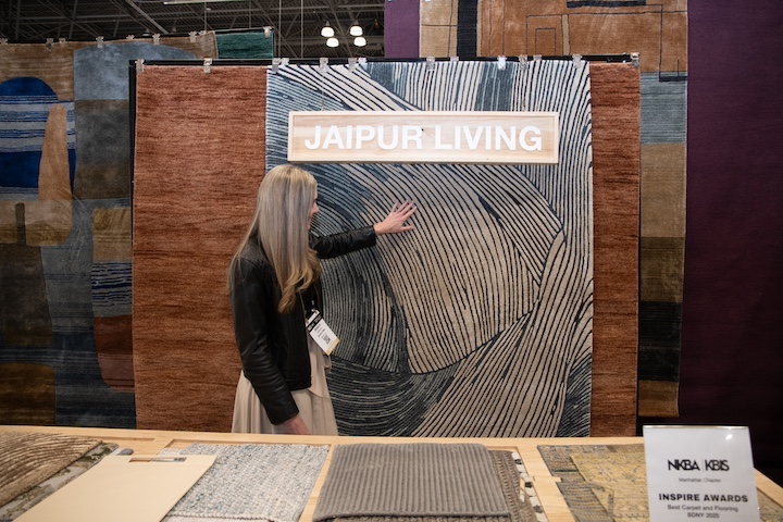 Jaipur Living took home the 2025 Inspire Award in the Best Carpet/Flooring category for its custom and stocked area rugs at BDNY. The company featured a range of styles in rich warm brown colors and inky blues in a fresh slate of hospitality focused weaves. Among the featured introductions was a new program called Nylon, offering a high-density hand-tufted construction woven of 100 percent solution-dyed nylon, which "is a great performance option that outperforms viscose and at the same price point as wool," a company spokesperson said. Other featured custom weaves include Plana, Textere, and Pathways. Plana is a 100 percent wool hand-woven Dhurrie; Texterai is hand-knotted of pure wool in a 4/25 construction; and finally, Pathways is a high-density hand-tufted offering crafted of 70 percent wool/ 30 percent viscose with a cut and loop pile.
