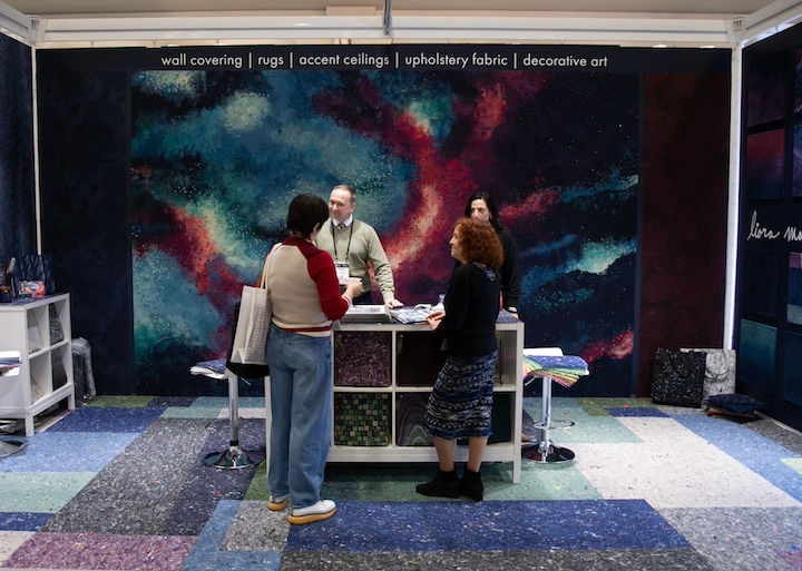 Design studio Liora Manne, a source for bespoke and customizable wall and floor textiles and rugs showcased its Celestial Drift collection, inspired by the night skies. Crafted of Manne's proprietary felted wool Lamontage, for hospitality installation drama, Celestial Drift is crafted with a special fiber that reacts to black light and has glowing elements when exposed to it.