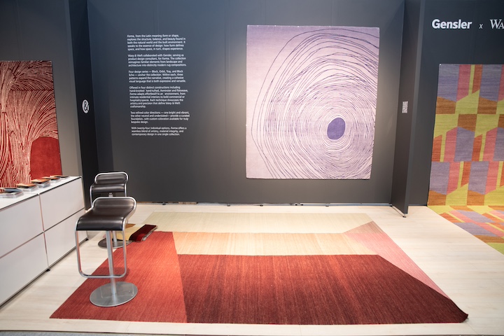 Featured on the booth's floor was Moire, inspired by rippling silk fabric. This piece is hand-tufted from a blend of New Zealand wool and durable nylon, and features flowing, linear striations.