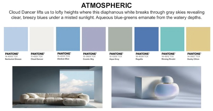 Cloud Dancer provides a canvas to layer other atmospheric colors atop, from Alaskan Blue to Cosmic Sky to Dusky Citrons.