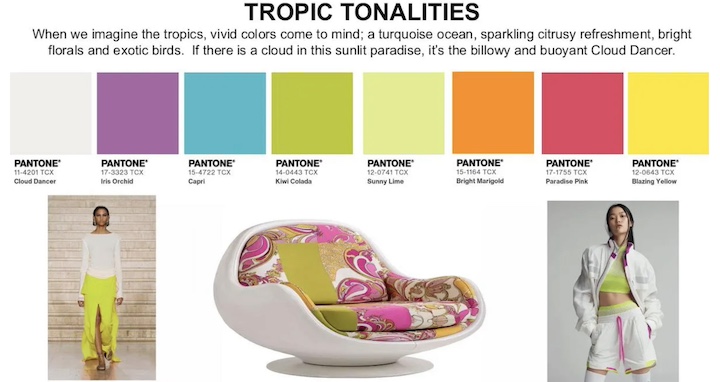 Pantone's Cloud Dancer serves as the perfect foil to vivid bright hues.
