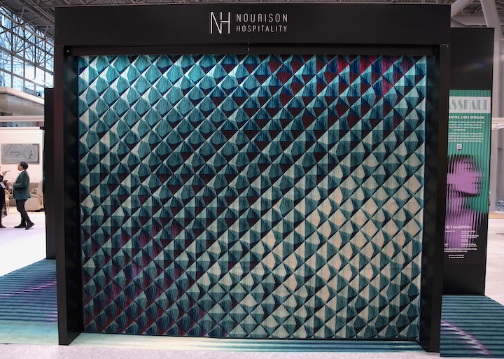 Hotel architects, designers and specifiers were stopped in their tracks by Nourison Hospitality's booth. The company introduced its new GLASSFALL collection of six different innovative carpet and rug weaves and some new product types in a range of blue and green tones with accents of deep purple and red tones. GLASSFALL's designs are inspired by the effect of looking at ordinary silhouettes through reeded glass, which transforms them into abstracted linear compositions.