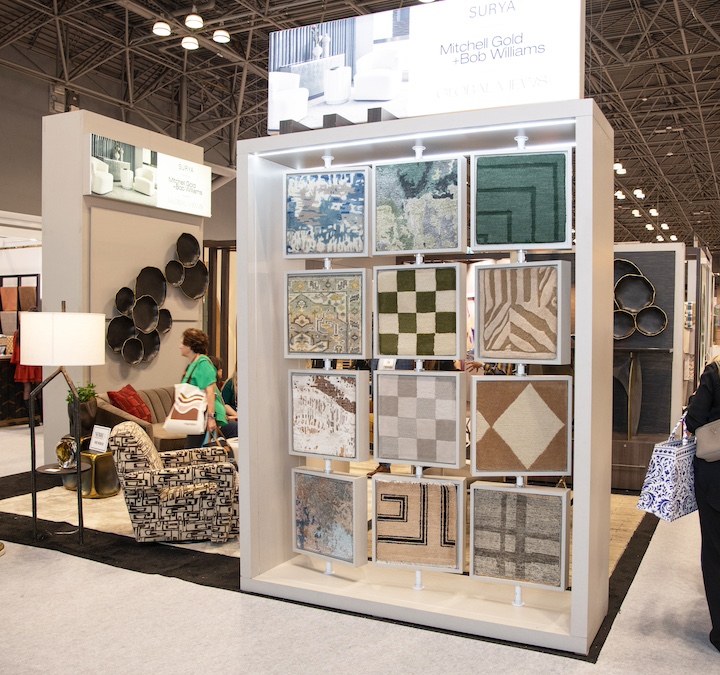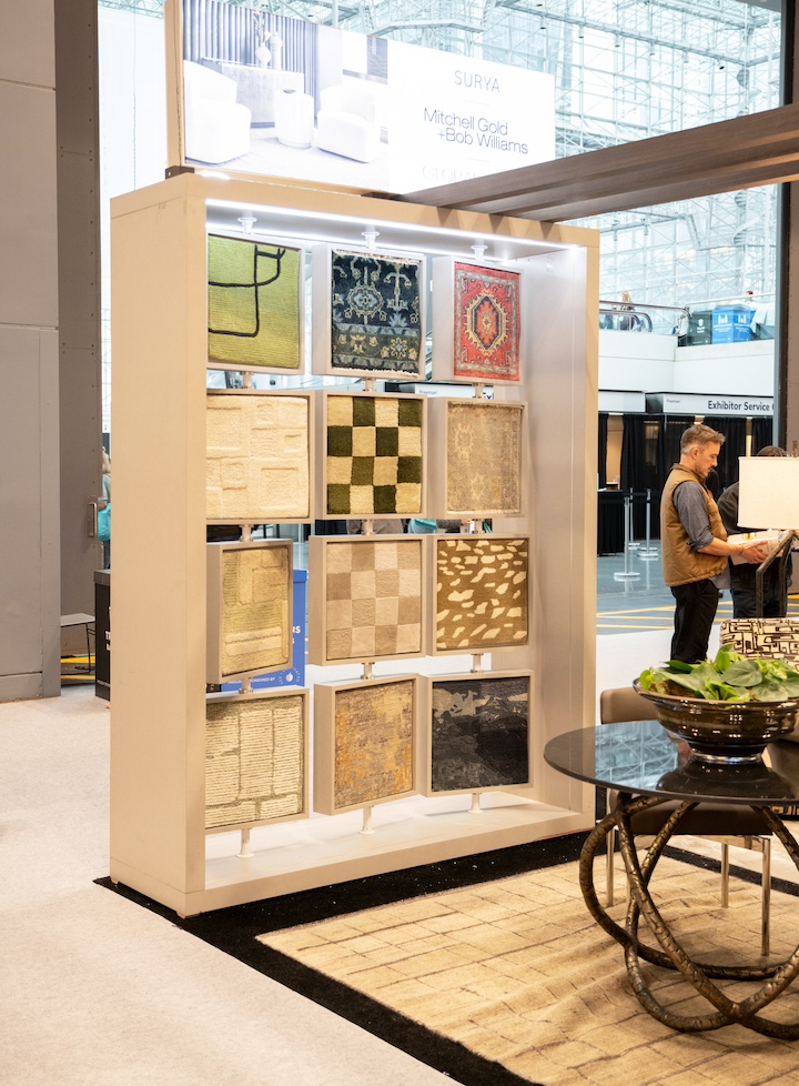 In addition, Surya showcased floor covering samples in a minimalist box display, which accommodated 24 trending designs, from checkerboard looks to updated traditional.