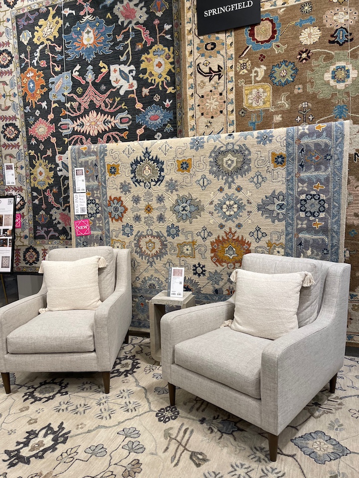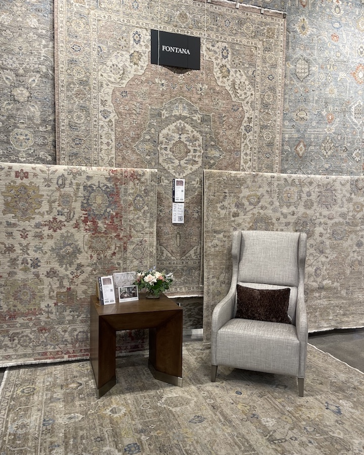 The exclusive tour included a stop to review some of Feizy's newest hand-crafted area rug introductions. Fontana, hand-knotted of high-quality wool using contemporary finishing techniques, such as oxidation, offers muted colorways such as beige, ivory and gray. And, the debuting Springfield collection, hand-tufted of wool, offers updated traditional rug patterns.