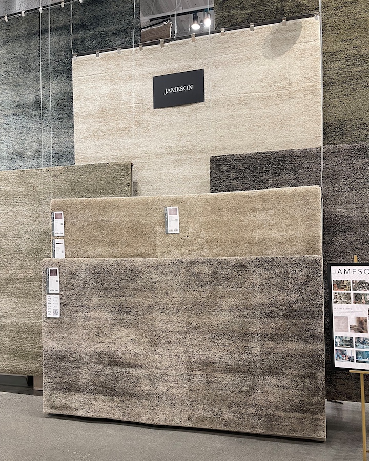 Designers were greeted in the Feizy showroom with a dramatic presentation of the family friendly Pearson collection, an instant hit since its introduction last year with both retailers and designers. These rugs are made of plush polyester and power-loomed for durability, and each rug features a 0.55-inch medium pile and cotton backing.
