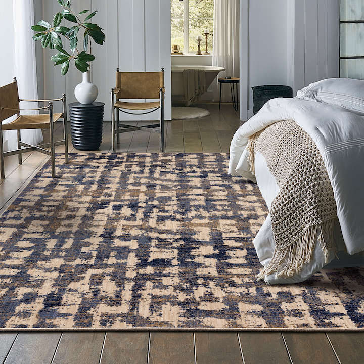 Karastan's Stacy Garcia Home assortment includes the soft Abydos design shown in periwinkle colorway.