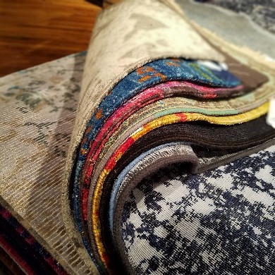During the upcoming Dallas market, Feizy opens a showroom dedicated to its growing assortment of one of a kind (OAK) area rugs. Above a stack of contemporary OAK designs.