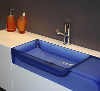 Savories: clear blue sink with orange accessories