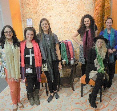 Omaha, NE, model silk scarves that Amer Rugs creates in fashion
