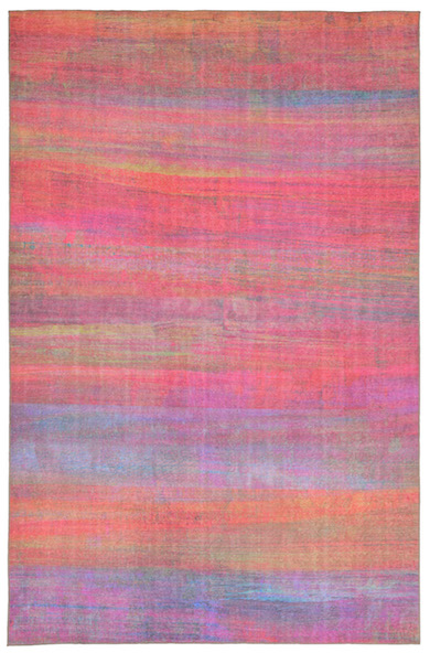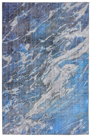 The Shadows design from the Lhasa collection is inspired by the very popular influence of Japanese shibori. Here, the aqua color enhances the more traditional practice of using blues and whites. The graphic Lhasa range is Wilton woven in Turkey from a blend of 80 percent polypropylene and 20 percent polyester giving it an incredibly plush texture underfoot. Sizes for the Lhasa collection include 23" x 35", 39" x 59", 4'11" x 7'6", 7'10" x 9'10" x 12'6", 23" x 7'6" runner. MSRP for 4'10" x 7'6" is $285.