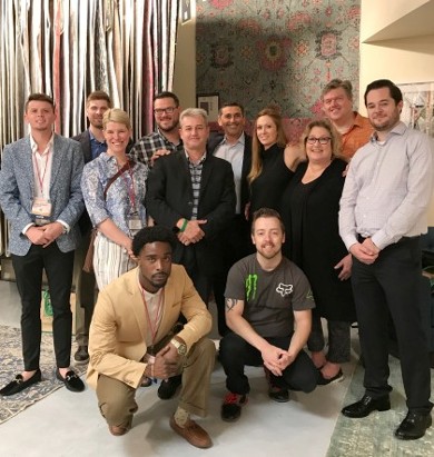 Ali Momeni, back row center, gets ready to present Momeni introductions to the Macy's Fine Rug Gallery/Kenneth L. Mink & Sons Inc. team attending Las Vegas Market.