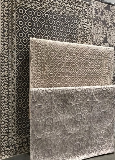 The texture trend is epitomized in Feizy's Branson collection of tone-on-tone high-low designs, a Vegas showstopper.