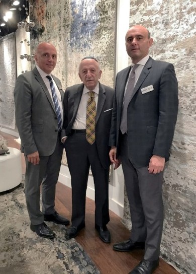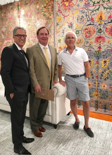 Ramin Kalaty with father Mirza and brother Farshad in front of Kalaty's popular contemporary abstract hand-knotted designs.