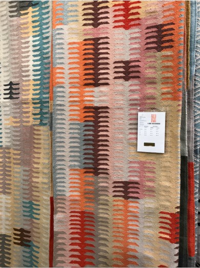 Buyers were loving the orange accents in Jaipur's indoor-outdoor Desert collection DES-19 in burnt ochre-coral gold.
