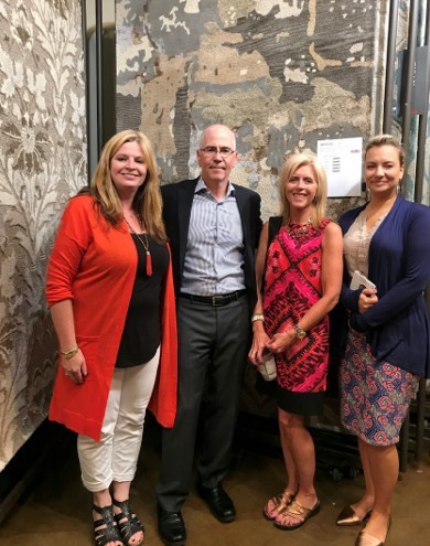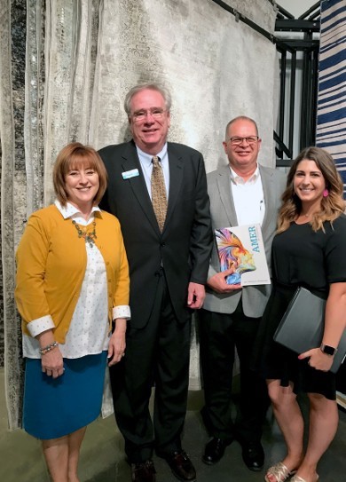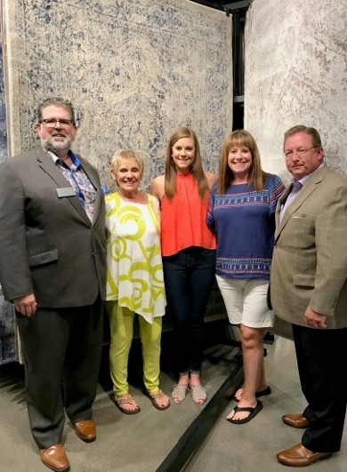 From Left Wendy Reiss and John McPherson of Kas Rugs, Teri Hayden-Kalis of Steinhafel of Waukesha, Wisconsin, and Kas' Vee Curfman. in front of Kalis' favorite Artisan rug (2151).