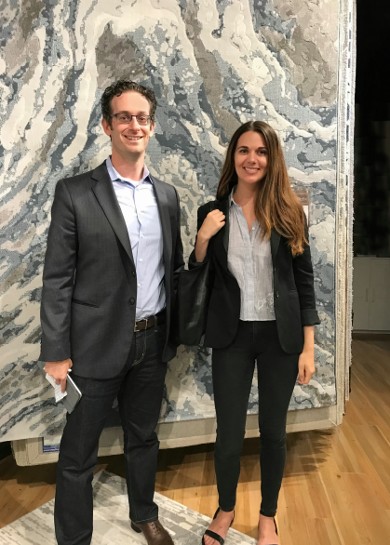 Dan Ross from Couristan and Birch Lane buyer Kristina Gish in front of a design from the Easton collection, one of the rug maker's best-sellers.