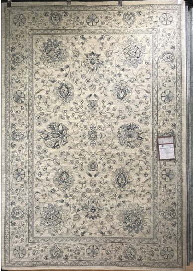 Couristan area rugs pairing ivories with blues or grays, such as this Sultan Treasures design, a face to face Wilton weave made of 100 percent heat-set Courtron polypropylene, were hits with summer shoppers.
