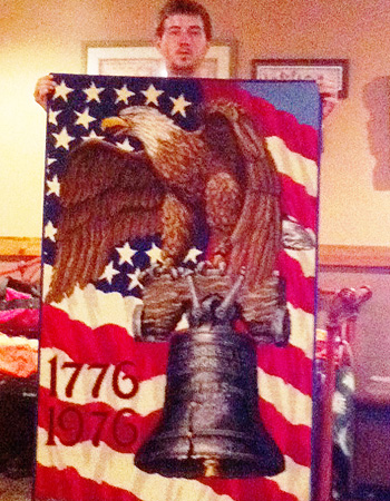 Reader Travis Lee with Alexander Smith Com Bicentennial Commemorative Rug he bought at garage sale | By Lissa Wyman Some rugs are so ugly, they refuse to die. Take, for example, this 35 year-old Alexander Smith acrylic rug produced for America's Bicentennial year. We received the following e-mail from Travis Lee, a reader who obviously can't resist a bargain. "Dear Rugnews.com: Recently saw your site on Yahoo and thought I'd share a cool story with you. I was at a garage sale the other day and the lady said she had a cool rug that her parents bought in 1976. So being a curious person I looked at it and low and behold it's the rug you're talking about, the 1976 Mohawk Alexander Smith Bicentennial Rug. It's been in storage since the day they bought it, still has the original tag on the bag and looks completely brand new so needless to say I bought it at a great price and I love it." Lee later confessed to paying $65 for the rug and asked me if I you would be interested in buying it. I turned him down, noting that the suits at Alexander Smith actually GAVE me one of those suckers back in 1976 and I was too timid to throw it out until 1986 or so when everyone connected with the dang thing had either retired or died. I suggested to Lee that he donate it to the local American Legion or VFW and take the income tax deduction. (I'm not sure, but I think the original price tag on this Axminster rug was over $200). The rug was Axminster woven in Amsterdam, NY by Alexander Smith, which was part of Mohasco at the time. The company moved to the Atlanta area in the early 1990's and became Mohawk Industries, parent company of Mohawk Home and Karastan. For anyone who would like to read two other stories about this beauty click here. and here. A story on the restoration of another commemorative rug dating from 1916, click here. Since this rug seems to be haunting me, I'd still be interested in hearing reader comments on the 1776 rug and other commemorative curiosities. E-mail us at lwyman@rugnews.com 8.17.11 Use the comment box below to share your thoughts with rugnews.com readers. Feel free to comment on the state of the industry, share tips on improving business or just to let off steam. Please do not use this privilege to make libelous remarks or to sell your products.