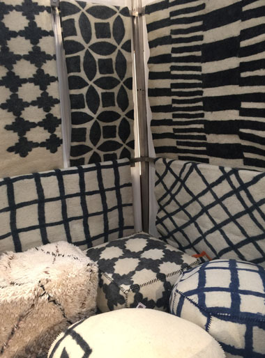 woven flatweaves of indigo and white. Below are wool felted rugs