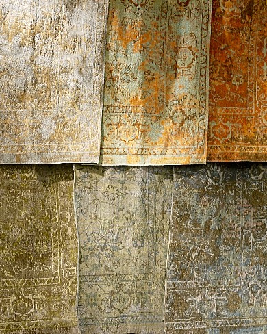 "Our rugs are not backed and are true flat weave rugs, produced in Belgian by artisan weavers in a vertically integrated mill. We hang them in 12 x 12" corner samples, not on racks, to emphasize their textile hand and appeal. By being flat woven, the Louis de Poortere rugs are attracting both millennials who can use them for their loft/Boho lifestyle, and by seniors who worry about tripping on thick hand tufted or hand-knotted rugs."