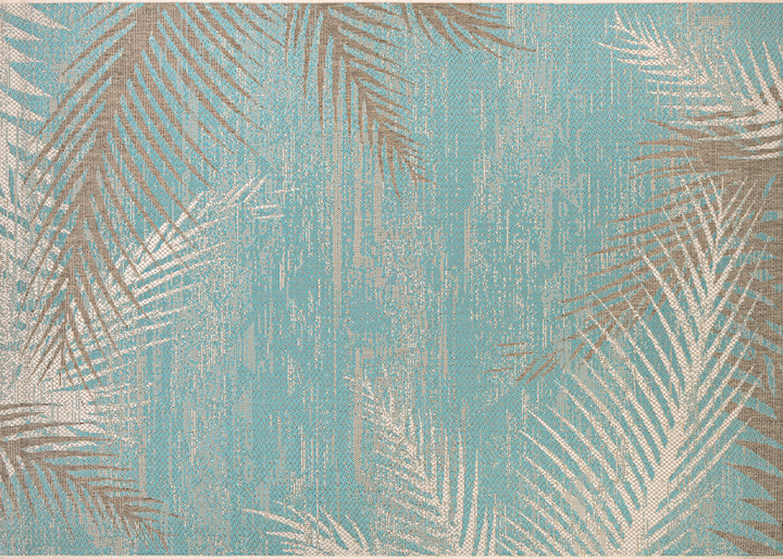 Indoor-outdoor rugs drove sales at Couristan and this contemporary palm leaf design from the Monaco collection