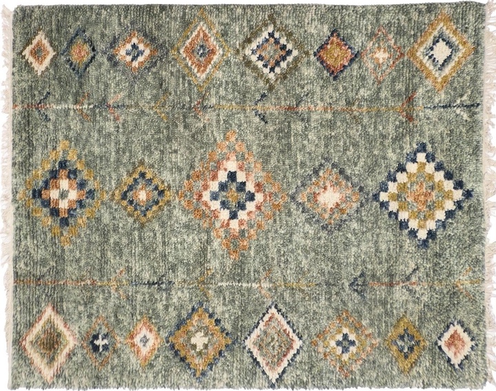 Another new hand-knotted collection putting a fresh spin on Moroccan-inspired design is Casablanca. Bright, airy and effortlessly stylish, Casablanca features 100 percent New Zealand felted wool hand-loomed in India. Suitable for traditional or contemporary interiors, Casablanca combines light backgrounds with soft greens and calming blues, accented by rugged geometric lines.