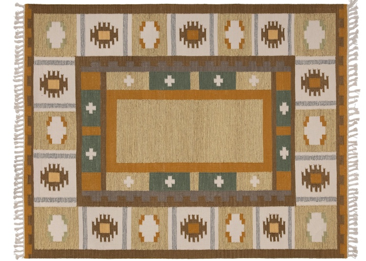 The designs draw inspiration from vintage Swedish textiles—with their graphic, geometric patterns—and the soft, fluid forms found in nature. Some styles are rhythmic and structured, while others offer more abstract interpretations of flora and fauna. The color palette is grounded in earthy greens, rich browns, golden tones and warm peach hues—bringing warmth, depth, and a sense of calm to any space.