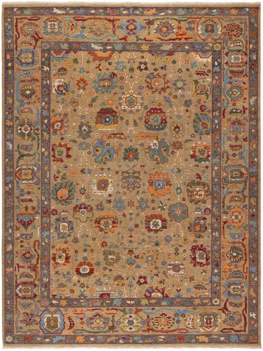 The Norris collection, also hand-woven with the Persian knot technique, is crafted in a luxurious blend of Gazni and New Zealand wool, which is hand-spun and abrash dyed. Hand-sheared, double-washed and hand-serged, these rugs showcase traditional Oushak designs in brown, green and rust hues.