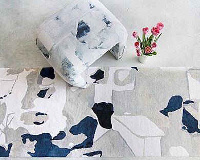 The collection is composed of rugs constructed in combinations of silk and super soft fine merino wool, all hand knotted in variety of different weave structures and pile heights.