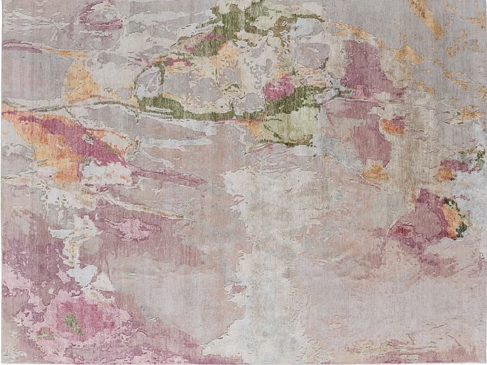 Feizy's luxurious Keeley collection of abstract motifs rendered in wool with silk accents illustrates how the latest pastel-injected designs can ground a room and bring a unexpected sense of calm to a space. Hand-knotted in India.