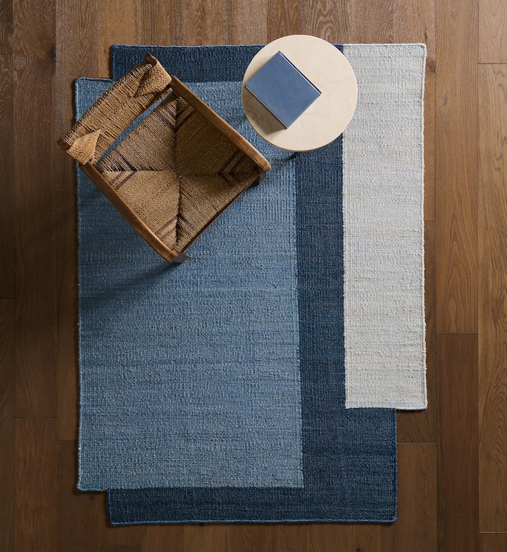 The Refinded Layers collection updates color blocking with bold colors, distinctive geometric forms and novel fiber. Handcrafted by artisans using natural fiber jute, its textured low-pile details and subtle luster showcase the architectural color blocks and unique cutouts.