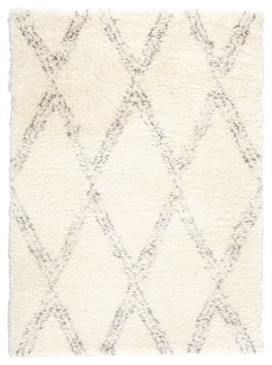 The ultra-plush Faolen rug (MKA01) from the new Minka collection features a trellis, chain and tiles design in a clean white and gray colorway.
