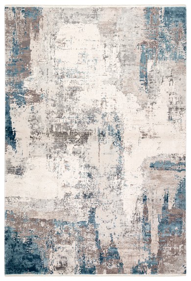 An ethereal elegance defines the Wren collection, made of luxurious viscose and acrylic. Skyler area rug, pictured, features a modern abstract design with a unique painterly effect. Understated and airy, the ivory, gray and vivid blue colorway complements a myriad of styles and decor.