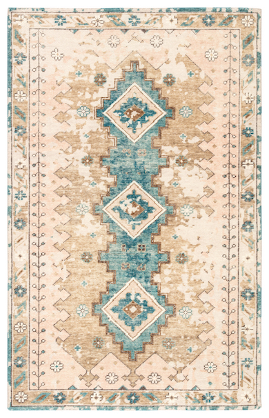 The Sarinen collection by Jaipur reworks antiqued patterns in power-loomed polyester. Shown, Sunaya (SAR02)