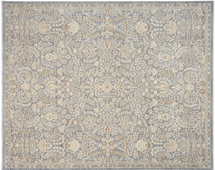 The vintage-styled Ashbourne series features classic floral motifs drawn from traditional rug design and rendered in a soft, timeworn palette that is both familiar and fresh. Power-loomed from performance fibers, Ashbourne delivers the warmth and look of a well-loved antique with durability and practicality. Rugs are power-loomed in Turkey of 50 percent polypropylene and 50 percent polyester. Available in trending neutral colorways such as beige, blue, charcoal and green with available sizes from 2'6" x 9' runner to, 9x12.