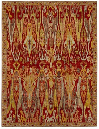 On display at the Sackler Gallery are Wool & Silk's Suzani rug, a Central Asian design, above, and an Ottoman Empire design from the Ottoman collection. Both rugs are woven in Afghanistan.