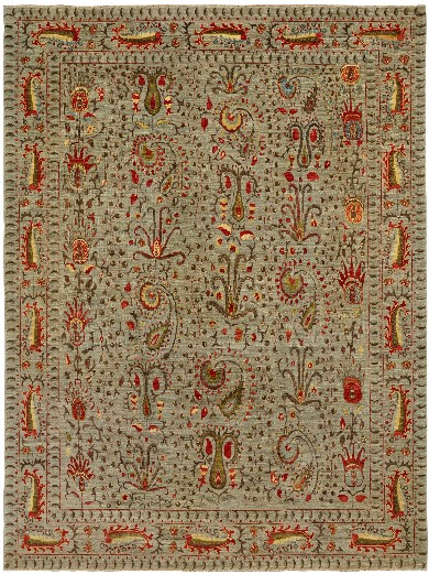 "I took elements from about 20 different Afghani rugs, but the challenge was to put them together harmoniously and to modernize them. It took about five to six weeks to design the rug and it took four to five months to construct it using extra weavers," Tezcan told RugNews.com.