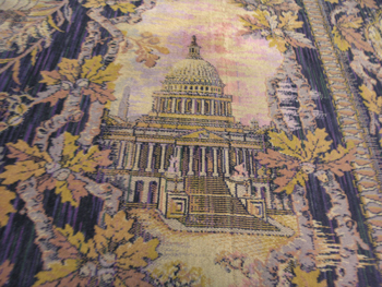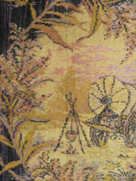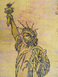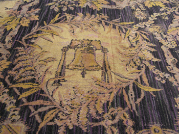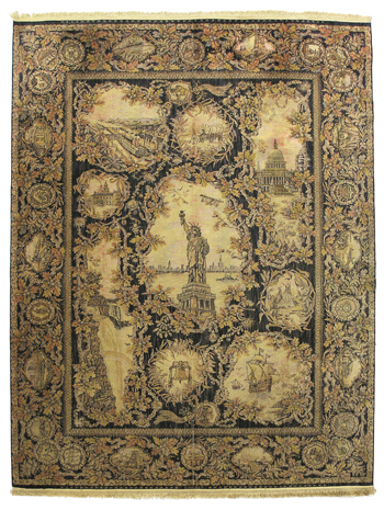 The Woodrow Wilson Liberty Rug was the first of 20 commemorative rugs machine-woven in Amsterdam, NY by the Shuttleworth Brothers factory. It was inspired by the floodlighting ceremony at the Statue of Liberty Dec. 2,1 916. NEW YORK -- Restoration by Costikyan has completed restoration of The Liberty Rug, an historical American-made rug inspired by the initial floodlighting ceremony at the Statue of Liberty on Dec. 2, 1916. The restored Liberty Rug was the first of 20 that were Axmisnter- woven in Amsterdam, NY by the Shuttleworth Brothers factory. It was presented to President Woodrow Wilson by W & J Sloane, the sole agents for the design. President Wilson officiated at the floodlighting ceremony in Manhattan. The National Trust for Historic Preservation commissioned Restoration by Costikyanâ„¢ to restore the carpet to its former magnificence. It has now been returned to its home in Woodrow Wilson House in Washington, DC, where it is on display in the President's Library. An image of The Statue of Liberty occupies the center of the rug. Surrounding her are monuments and symbols of American heritage that include Niagara Falls, the Mayflower, the Liberty Bell, Independence Hall, the Washington Monument, Capitol, and Native American teepees. A border surrounds the central images with illustrative medallions including many state seals. Depicted on the carpet are scenes of America circa 1916. Aviatrix Ruth Law flies over the Statue of Liberty in a biplane during the statue's floodlighting ceremony. Also represented on the carpet is a ship passing through the Panama Canal, opened during the Wilson administration and a Model T Ford driving through a California Redwood tree. The rug originally occupied President Wilson's bedroom at The White House prior to its installation at S Street in Wilson's Library. Rear Admiral Cary Grayson who wrote Woodrow Wilson's biography recounts a story illustrating the President's sense of humor during his illness. Once after he had been able to leave his bed and walk with the assistance of his cane, he was crossing a rug with a number of figures woven into it, the Washington Monument, the Capitol and Niagara Falls. As the President crossed the rug, he turned to me and said: "Doctor, that is not a bad stunt for a lame fellow, to walk over Niagara Falls this morning." Restoration by Cotikyan was founded in 1886 and specializes in the care, restoration and cleaning of fine rugs and tapestries. Some of the other Costikyan projects involving historically significant pieces include the Laver Kirman Carpet at Hearst Castle in California and the 17th Century Portuguese needlepoint in The Banquet Hall at Vizcaya Museum and Gardens in Miami. The Costikyan family has also been involved in consulting and participating in the selection, purchase and restoration of Oriental rugs for the mansions of Newport, RI. Before and After Restoration Of the Woodrow Wilson Liberty Rug  Lady Liberty Before |  Lady Liberty After |  Campsite Before |  Campsite After | Scenes from the Liberty Rug  Niagara Falls with rainbow  The US Capitol  The Liberty Bell  The Mayflower Commentary on Commemorative Rugs, click here. 11.19.09 Use the comment box below to share your thoughts with rugnews.com readers. Feel free to comment on the state of the industry, share tips on improving business or just to let off steam. Please do not use this privilege to make libelous remarks or to sell your products.